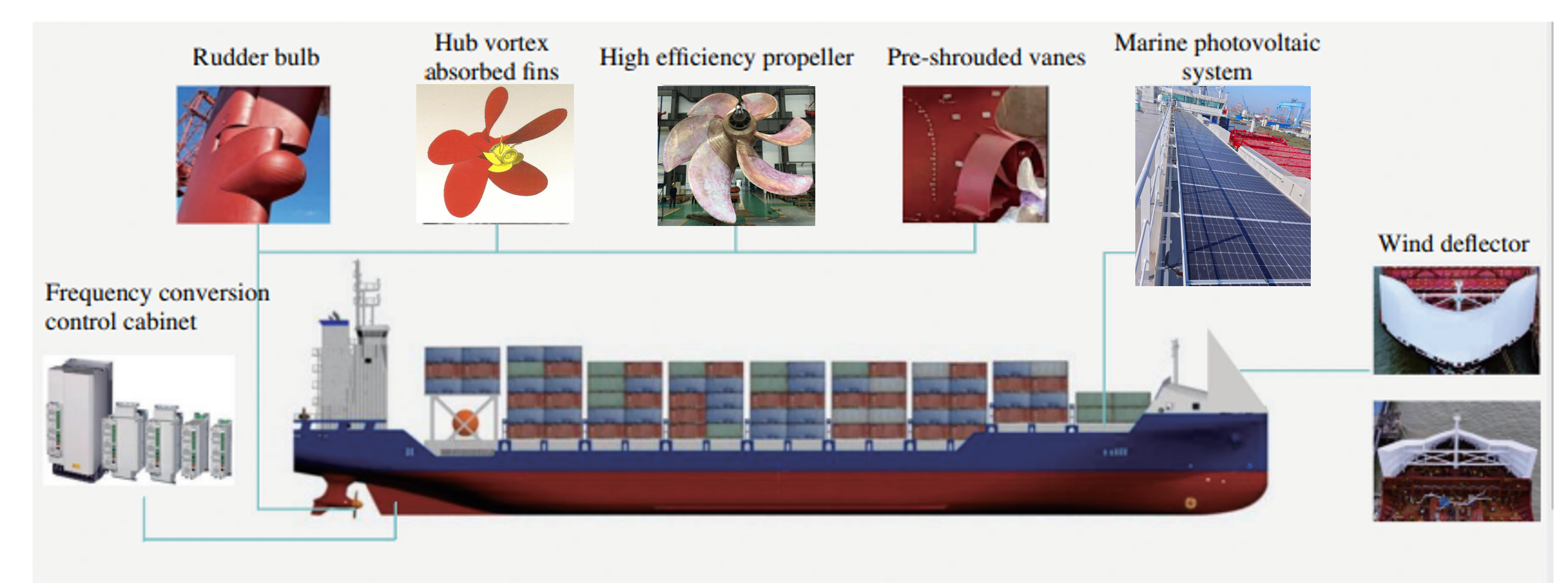 Our energy-saving devices mainly include rudder bulb, pre-shrouded vanes, hub vortex absorbed fins, high efficiency propeller, wind deflector, marine photovoltaic system and frequency conversion control cabinet to help ships cruise with greater energy efficiency.